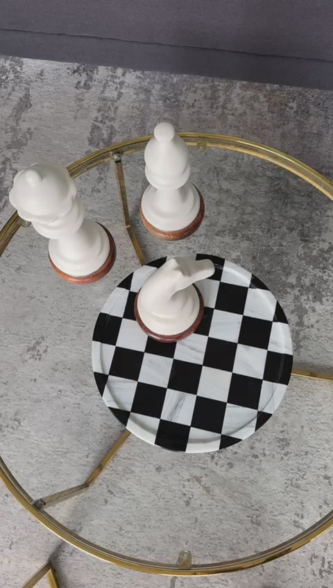 Charola Decorativa Circular Ajedrez de Mármol